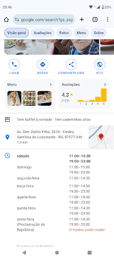Read moreNão vale a pena, pouca variedade de carnes. Se não pedisse, no fim do espeto corrido e esperasse muito, para servirem o queijo e a costela, que só havia passado uma vez, não comeria esses itens. Carne de porco, por exemplo, só um tipo. Picanha fora do ponto, os pratos serviços na mesa sem muito gosto, salada de maionese industrializada e ruim. Estava em busca de um espeto corrido digno de Livramento, mas foi um decepção só. Ambiente degradado, aspecto de abandonado. Banheiro com...