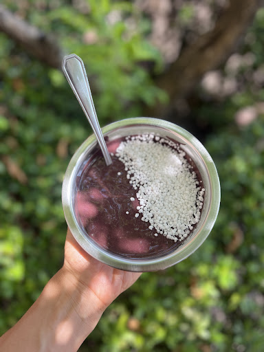 Aqui, provei de duas formas: o original, sem açúcar ou aditivos, com flocos de tapioca, camarão e um bolinho de piracui (foi uma experiência incrível!), e a versão tradicional do RJ, com granola, amendoim e outras coberturas – que também estava deliciosa.