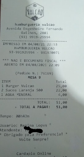Read moreParece que o serviço está em declínio, já faz algum tempo que como nessa hamburgueria, mas de uns tempo pra cá está definhando tanto no atendimento de delivery como na qualidade do produto, os sucos são os piores, as vezes vem chá de tão fraco no lugar do suco, quem pedi delivery só pra ser atendido demora meia hora, e pra chegar o lanche coloque mais uma hora e meia, e da última vez que pedi, a carne ainda veio com sabor de passada, como se estivesse estragada, ou seja, não comi, fui reclamar no whatsapp, ainda fui questionada como se estivesse mentindo, já foi bem melhor esse estabelecimento, agora prefiro o concorrente que abriu na...