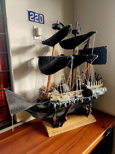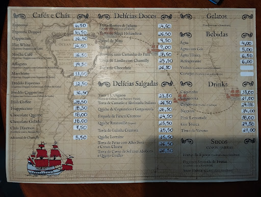 Excelente ambiente, bem temático, cheio de artigos antigos e de navegações, inclusive com uma réplica do holandês voador. É calmo, agradável. A comida é deliciosa, tem uma boa variedade, com pratos principalmente europeus. Pedi os quiches de cogumelo com gorgonzola, o de camarão com abobrinha, e o de carne de sol. Também pedi a panqueca de mussarela de búfala e o okonomiyaki (um prato japonês, não sei o que tava fazendo no cardápio, mas é uma delícia). Dos doces, pedi o brownie de castanha do Pará (cremoso, ponto certo do açúcar, e cheio de castanha!) e os sorvetes de chocolate (o melhor!), de gianduia e de tiramisu. Cada um dos preparos feitos com amor; era perceptível, porque estavam gostosos, interessantes, e bonitos. Também ofereceram salada e doce de abacaxi com pimenta nos quentes, e eu claramente aceitei. Preço justo, comi bem e feliz. O pessoal que veio comigo também adorou. Agradeço especialmente à Élida, que nos atendeu com atenção, bom humor e gentileza, e ao chef, que está de parabéns.