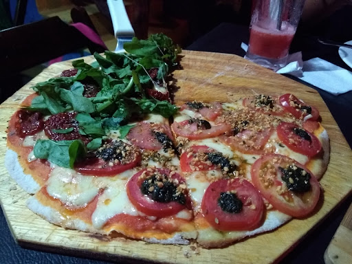 A pizza é bem gostosa para quem prefere massa bem fina ( a maioria das pizzarias de Lençóis fazem massa bem fina). Você tem a opção de rodízio (59,90 por pessoa) ou a pizza a la carte (a partir de 58.00) que acompanha um suco grande ou uma caipirinha. As pizzas chegaram bem rápido. Achei legal o rodízio porque pode escolher até 4 sabores e trazem a pizza inteira na mesa, ao invés de ficar passando o garçom toda hora com fatias avulsas. Pode pedir quantas aguentar comer. O atendimento foi muito bom, são gentis, educados, alegres e explicam tudo que perguntar. Levei minha filha de 3 anos, que estava enjoada e cansada de fazer trilha o dia todo, e levaram na mesa uma cestinha de giz de cera e um desenho para ela pintar. Ela amou e nós também, porque ela se acalmou e ficou entretida por um bom tempo. No final meu filho queria pizza de doce de leite, mas não estava inclusa no rodízio. O garçom falou que não dava para incluir, mas foi lá dentro e voltou oferecendo gentilmente dois pedaços como cortesia. Ficamos muito satisfeitos e recomendo para quem for em Lençóis, pois fica na rua principal, local super agradável com ótima...