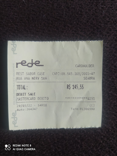 Chegamos 13:00 no restaurante, ninguém nos recepcionou, escolhemos o acento, ninguém veio trazer o cardápio, banheiro sujo, com urina no chão, buffet estava com pouca comida e poucas variedades, no buffet só tinha frango como mistura, na churrasqueira pedaços de carne com gordura tostados, na hora de pagar fiquei surpreso com o preço que me cobraram pelo quilo da comida, 3 pratos de comida 1 refrigerante de 1 litro + 1 lata de refrigerante R$ 145,55 Somos turistas, não gostamos do atendimento, não gostamos do cardápio, não gostamos do churrasco e nem pelo que foi cobrado, se vc e bem atendido se a comida e boa e de qualidade e vc e sua família saem satisfeito, vc paga o valor com gosto, mas não foi o caso da nossa experiência, não voltarei nesse restaurante, não indico pra ninguém, não tem aviso de valores sobre o quilo da comida do buffet, vc só descobre na hora de pagar, não fornecem nota fiscal, fiz questão de pagar com o...
