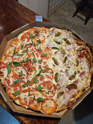 O local fica bem "escondido", foi preciso passar bem devagar com o carro para poder achar. O ambiente é muito gostoso, muito limpo, organizado, um boa música. A pizzaria conta com um pequeno estacionamento lateral. Tem alguns brinquedos para as crianças. O atendimento é muito bom, profissional e educados. O cardápio tem uma boa variedade, atendendo todos os gostos. A pizza feita com muito capricho, massa fininha e recheios...