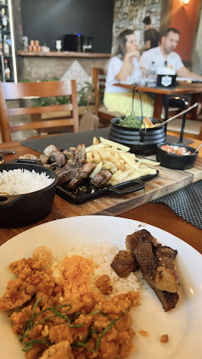 Read moreInfelizmente não tivemos uma boa experiência. Nosso prato demorou cerca de 1:30 h para chegar na mesa. Ao que tudo indica o garçom só lançou o pedido quando reclamamos que estava demorando. Como o local é dividido por ambientes, sendo térreo, 2º andar e mezanino, o antendimento do mezanino fica prejudicado pelos garçons compeltamente dispersos (tem que ficar balançando os braços para ser atendido). Quando reclamamos da demora do prato, o gerente muito mal educado, justificou que o pedido tinha sido lançado no sistema ha apenas 40 min, sendo que já tinha 1:30 h. Não nos pediu desculpas e ficou irritado com a reclamação. Nunca vi isso acontecer! Tirando todo esse perrengue, o local é bonito, tem tudo para dar certo, só falta bons...