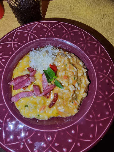 Eu e minha esposa havíamos pedido uma entrada, em seguida, solicitamos os pratos principais. Um risoto pra minha esposa e um filé com purê.