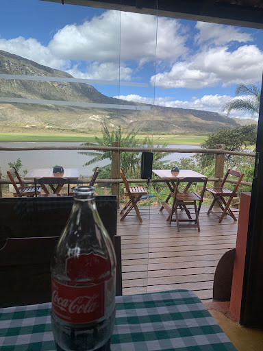 O restaurante conta com vista para a lagoa e cordão montanhoso da serra do cipó, sendo permitido acessar a área da lagoa pelo fundo do restaurante para caminhar se quiser.