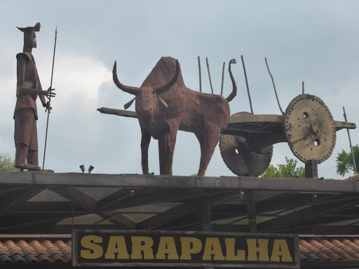 Esse trecho de Boiadeiro Errante, criada por Sérgio Reis, é um estilo de música sertaneja chamada de modão. Pautada em violas de 12 cordas e duas vozes, a música remete aos caminhos que um boiadeiro, e sua comitiva, percorrem para levar as rezes através de veredas e caminhos do sertão. E nesse clima que encontramos Sarapalha, nome de um dos contos de Guimarães Rosa, situada na charmosa Cordisburgo, em Minas Gerais. O restaurante é uma delícia com uma enorme variedade de comida mineira. O preço é bem barato e o atendimento primoroso. O local é agradável demais da conta e tudo lembra o famoso escritor, filho da cidade. Apesar de não ter ar condicionado, os ventiladores dão conta do recado e não deixam o ambiente quente. O estacionamento, apesar de ser na rua, é fácil e a entrada do restaurante um show. Os banheiros são ótimos e bem limpos. Não é complicado para cadeirantes e tudo funciona direitinho.
