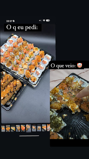 Eles alegaram que o sushi havia sido preparado no mesmo dia, o que me pareceu inacreditável, dada a condição em que chegou. Mesmo assim, prometeram enviar um novo pedido na terça-feira (hoje). Mandei mensagem cobrando, mas não obtive resposta. Então, resolvi tentar do celular do meu marido — e para ele, eles responderam, mas para mim continuaram ignorando.