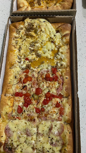 Read moreSempre pedimos delivery, a pizza é muito boa, mas tive a infelicidade de ir no rodízio e me arrependi muito, uma demora eterna pra passar com a comida na mesa, o garçom foi super grosso com a gente Fomos pro rodízio por conta de um vídeo que postaram no Instagram, e lá falava que tinha diversas coisas no rodízio, chegamos lá não tinha nem metade das coisas que eles postaram. Não gostei da experiência comendo no local, porém a pizza...