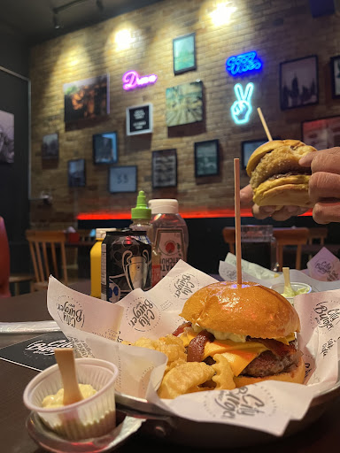 A hamburgueria em questão é verdadeiramente excepcional em todos os aspectos! Seu ambiente exala uma atmosfera de extrema agradabilidade, proporcionando um conforto indescritível aos seus frequentadores, ao mesmo tempo em que é habilmente climatizado para atender às mais diversas preferências. A decoração, por sua vez, é magnífica, apresentando um estilo meticulosamente elaborado que é um verdadeiro deleite visual. Além disso, a escolha criteriosa da música ambiente contribui para a imersão completa na experiência gastronômica.