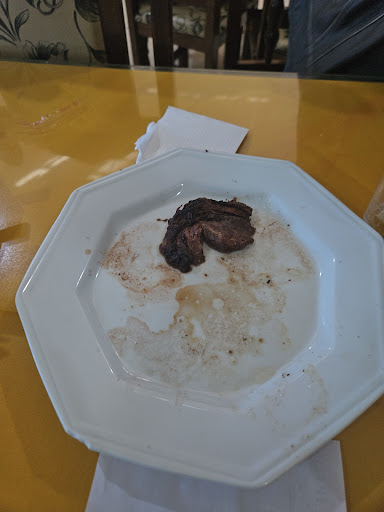 O tal do "espeto corrido" servido pelo restaurante na data que eu almocei, era composto pelos seguintes cortes: 1- Vazio 2- Costela bovina (o boi devia ter uns 80 anos, pela espessura da ripa e pela dureza da carne). 3- Costela de carneiro ( carne seca) 4- Fraldinha ( Tenho certeza que não era esse corte, não consegui identificar o que era, mas não pude comer, era muito dura). Paguei R$65,00 só pra perder tempo na minha viagem, uma decepção! O buffet era razoável, minha esposa optou por essa opção. O sagu...