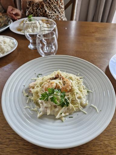 Lugar agradável refrigerado comida gostosa garçon muito solicito o chefe muito atencioso pedi um pra individual de massa com camarão então só posso falar do mesmo só tinha para 2 peças mas conversando com Gerson e o chefe e a gerência atenderam meu pedido fiquei muito satisfeita na mesa foi pedido o peixe frito e o filé a parmegiana que falaram que está muito bom preço dos pratos não são tão baratos como vi nos comentários ma está no padrão Pq não leva 5 estrelas pq precisa ter mais garçons se tivesse mas nossa conta teria dado muito mas alta kkk minha visão comercial . Eu paguei uns 70 no prato e tomei uma coca q...