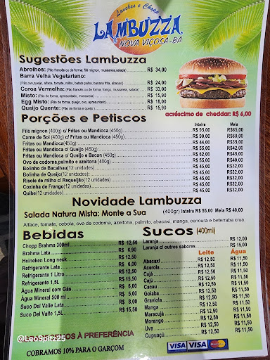 Read moreMelhor hambúrguer da cidade, quem vai conhecer a cidade tem que visitar o lambuza , tem shoop da BRAHMA CANECA DE VIDRO ,hambúrguer variados até com filé mignon melhor pra mim com banana top demais . Obs:estudem o jeitinho de colocar maionese e ketchup em bisnaguinhas fácil de colocar , façam uma maionese da casa temperada ,é difícil crianças abrir a embalagem de plástico , ou colocar uma mini tesoura nas...
