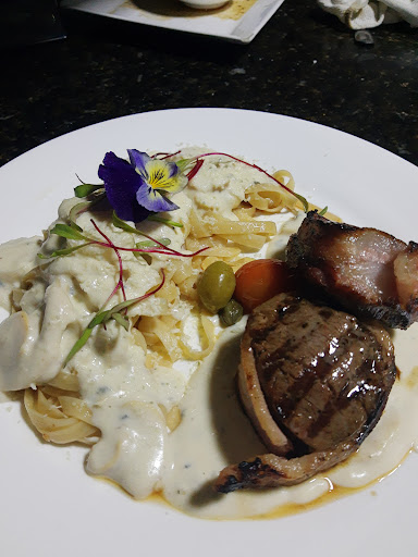 Viajando pra Porto seguro encontrei as margens da BR 101 esse restaurante que fico localizado na pousada vista da pedra, com um cardápio variado para todos os gostos e preços, minha escolha o medalhão vista da pedra um prato com macarrão ao molho branco muito delicioso adorei, o ambiente e bem agradável e as atendente foram muito educadas e atenciosas...