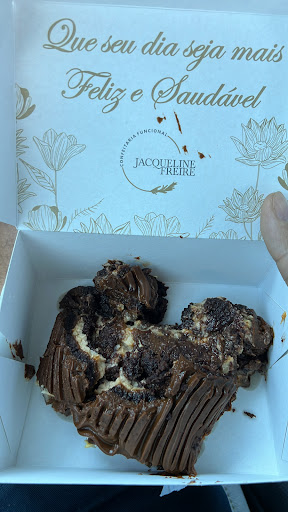 Read moreSimplesmente bárbaro ter uma confeitaria funcional em Teresina e perto de casa. Eu já havia pedido em várias confeitarias da cidade que fizessem opções funcionais, mas ninguém nunca se interessou. Amo as opções salgadas da Jaque, mas tinha receio de experimentar as doces pq meu paladar repugna alimentos doces demais. Amo brownie e finalmente resolvi experimentar um… Não dá. Doooooooooce demais! Tudo nessa cidade que é adoçado, é repugnantemente doce. Metade já daria pra suportar… Sigo tendo eu mesma que fazer minhas opções doces, apesar de eu não ser nada...