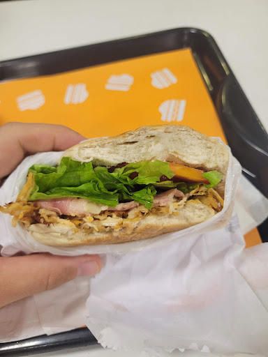 Atendimento do começo da noite é horrivel, porém o hamburguer bom. Fui duas vezes, na primeira vez ja vi que o atendimento era ruim, as atendentes do caixa não dão a minima pra nada, mas isso não é problema. O problema foi que na segunda vez que fui botaram apenas uma lasca de folhas (salada) onde nem dava pra ver quando recebi o hamburguer, fui lá falar que o hamburguer tava errado, que não tinha salada, a gerente abriu o hamburguer e falou ta aqui a "SALADA", tinha UMA folha do tamanho de um dedo la dentro, bem escondida e ela nem se propôs botar mais, simplemente me deu o sanduiche de volta. E lá o sanduiche não é barato para o gerente não aceitar a reclamação do cliente. A gerente, eu acho que era, uniforme preto, não conduz bem com o cliente, o atendimento é ruim. Não...
