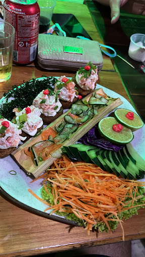 Read moreNão achei próprio o sushima usar o maçarico de cozinha para queimar os pelos do próprio braço ao lado ds bandejas de sushi,talvez por isso vi uns pelos em cima das peças de sushi. Outro fator negativo é não ter uma comanda descritiva com os valores e identificação dos produtos,você paga um valor e não recebe nenhuma nota...