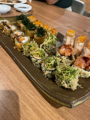 Read moreFui em um dia de segunda feira, estava relativamente vazio (acredito que tinha mais funcionários do que clientes). Escolhi a sequência japonesa e não tive a experiência que imaginei, pelo renome do local e do nome da "marca". As peças que são totalmente cruas são boas, mas as do tipo "hot" (makis especiais) estavam frias, oleosas, e com aspecto de terem sido fritas em óleo velho. Inclusive o crispy, o arroz frito, lula crok... Na parte da robata (teoricamente espetinho japonês) eu pedi apenas a de queijo e veio um quadradinho de queijo, que estava frio e pouco grelhado, estava mais pra um queijo frio cortado. O hossomaki de camarão quase não tem camarão, parecia um camarão moído. Aliás, há poucas opções de peça ou pratos com camarão. Não teve demora pra servir as comidas, porém ao pedir um prato limpo, outro hashi, wasabi, limão, etc, demorava pra trazerem e as vezes esqueciam de trazer. Aliás, não entendi porque na mesa só tinha molho shoyo (que não parecia fresco) e hashi. O básico pra quem pede a sequência japonesa era ter ali a disposição na mesa o molho tarê, wasabi, gengibre,... A música ambiente era bastante agitada, acho que não ornava com o local. Mas também vale destacar que o temaki é muito bom, o ceviche, o carpaccio de salmão, os sashimis de salmão e salmão maçaricado, e principalmente as duplas especiais. Apesar de tudo, o atendimento é bastante cordial e simpático. Porém, pelo menos no meu caso, apenas um garçom me atendeu, caso ele estivesse ocupado e eu chamasse outro próximo, ele ignorava e só atendia "as mesas dele". Pelo preço de 145 reais na sequência japonesa no jantar e o que eles entregam em relação a qualidade, não sei...