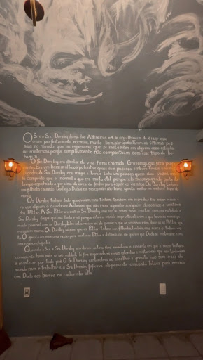 Pontos positivos: ambiente incrível com a temática geek, que cativa o cliente a ir descobrindo cada detalhe em cada espaço do local. Os nomes do cardápio, hambúrgueres, porções e sobremesas são temáticos e bem legais. Há ótimos painéis temáticos para tirar fotos, bem como um chapéu seletor, cachecol da grifinória, varinhas, livro do monstro, mandrágora e câmera secreta. A localização é ótima e tem como estacionar na própria rua próximo a hamburgueria. Os preços são bons e a comida é muito boa.