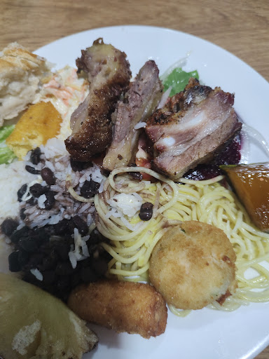 A comida é muito boa, tanto o buffet quanto as opções de churrasco que são variadas, conta com cupim, costelão dentre outros cortes, servidos em abundância e com muita qualidade na chapa em frente a churrasqueira. O preço é justo, durante a semana 35 e no sábado 45 livre. Apesar do calor dessa época, o local é bem ventilado. O valor das bebidas é um tanto exorbitante, 10 um refri 600ml é bem acima do praticado em outros locais. Sobre pontos negativos, e críticas construtivas, ao chegar no local a impressão não é boa, o ambiente precisa de melhorias estéticas urgentes, como mais atenção a limpeza no vidro da porta de entrada, no lado de fora tem uma parede rebocada com uma escrita estranha deveriam pintar aquilo... tenho certeza que perdem muitos clientes por essa questão. Estão no caminho certo para se tornar melhor...