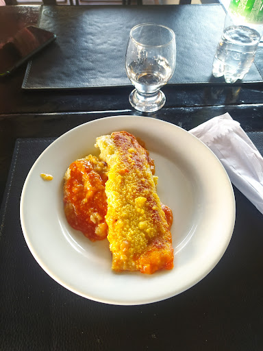 Ao finalizar, fui ao caixa, onde estavam duas pessoas, uma mulher, de olhos claros, simpática, me perguntou se estava satisfeito e respondi que sim. Mas ao lado dela, tinha um homem (Gerente ou Proprietário). E eu falei: - Estou sim, porém gostaria de deixar uma observação, falta uma faca para cortar carne. Tive dificuldades para cortar a carne com aquela faca. Imediatamente, o senhor ao lado, me respondeu com sorriso no rosto em tom irônico: - Tem tanta coisa para arrumar, não é só a faca da carne não...