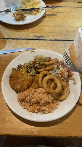 Read moreEstávamos em 4 pessoas e pedi o que era SEQUENCIA DE FRUTOS DO MAR. Garcon descreveu muitas coisas e pareceu muito atrativo, pedimos metade daquela porção que ele disse ser ENORME. Bom, não veio metade das coisas que ele disse, veio UM PALITO com alguns camarões, veio UM POTINHO de plástico que eles chamam de casquinha de siri. E UM POTINHO com um arroz com ketchup e 3 camarões dentro que eles chamam de risoto de camarão. Um prato cheio de alface e batata, e uma coroa de abacaxi que eles devem ter tirado do lixo, pq aquilo ali não tem serventia alguma. Quando fomos pagar (mais de 200 reais) ele me cobrou uns 30 de serviço e eu disse que não ia pagar, e disse que gostaria de fazer algumas observações. Quando eu falei ele disse que minha colocação não era coerente e que não aceitaria. Só paguei e fui embora!!! Não frequentem esse...