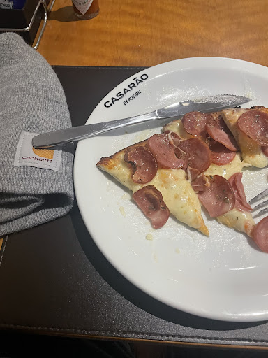 Casarao by fusion!! Topzera! Ta in ingles neh? Tem que ser top! Por que nao ser top? Tamo falando de pizza, e pizza de rodizio boa! Nota final da pizza+rodizio+ REFILL DE COCA COLA DE GARAFA TRINCANDO por 75 conto: noootaa 8.45! Piazada o rodizio por si so ja se paga, uma vez que eles deixam de oferecer pizzas pra levar - que na moral uma pizza media sem refri custa isso - vale muito a pena se tu passou por osorio e fez um longão de bici ou subiu o morro da borussia correndo....agora bora falar de fusion? As pizzas sao realmente inovadoras: costela, de picanha, de LINGUIÇA DA BORUSSIA, pizza de SALMAO COM SALMAO DE VERDADE, de mega drive, de pao-27 graos uma loucura! Ta ta, aquelas duas ultimas eu me empolguei. Quem nao tava empolgada era a tia que dava pinta de ser a proprietaria microgerenciando a mina na estação de massas. Simmmm ali tu escolhe tua massa e eles fervem ela fresquinha e adicionam os molhos - que nao estavam propriamente armazenados em containers com temperatura adequada - com uma guarnição subpar. Dai a mesma tia- vendo que o restaurante ta bombando vai la na copa e da pitaco pra agilizarem- depois vem uma rodada de aneis de cebola empanados previamente congelados (mano lembra: 70 conto). Dai se tu ta ali sozinho ESQUECE que vao te esquecer. E eles te esquecem mesmo. Foram 47 minutos sendo preterido por mesas com 4 ou mais pessoas. Show de bola foram as guria do salão que baixo pressão estavam sorrindo e se esmerando pra entregar uma experiência positiva pros convidados. Alias, fui cortes com toda equipe e sinto que eles deixaram de reciprocar. Quando fui pagar perguntei se a casa tinha GM e fui informado no momento que nao. É uma pena ta ligado. Uma casa com tremendo potencial servindo de maneira deficitária sao convidados - sera porquê não tem concorrência no sistema divulgado? Na moral mano, se é pra ser uma parada fusion tira a estação de massas e coloca um hibachi ali ta ligado? Tu consegue grelhar camarão e melhorar a experiência com os clientes com aquela interacao ao mesmo tempo que mantem o funcionario (nada de colaborador) ocupado mas feliz. Implementa uma estrutura transversal estilo brigada-francesa com ranks dentro da cozinha assim os pizzaiolos iriam se sentir mais valorizados e o pessoal do salao substituiria o senso de anarquia por uma cadeia de comando hierarquico. Uma coisa que voce deve se atentar nesse restaurante é CHEGAR CEDO porque depois bomba e dai ja era irmao. Se certifique do horario de funcionamento previamente dai tu toma aquele bainho de sabado pra comer uma piticinha...