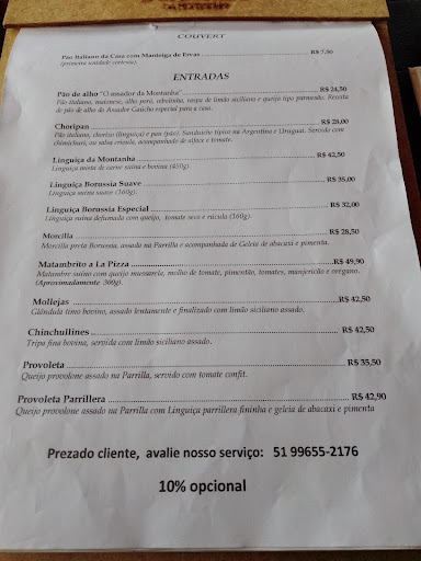 Read moreComida boa, mas cara pelo que oferece... atendimento sofrível. Fomos ao Parrilla da Montanha para um almoço de domingo, eu e meu esposo, e os problemas já começaram na entrada... pedimos uma Provoleta Parrillera, que seria queijo derretido com linguiça, a primeira vez a linguiça veio completamente crua e tivemos que pedir para retornar, com isso o queijo acabou esfriando e trouxeram o prato sem o cuidado de derreter novamente, deprimente. Fomos ao prato principal, pedimos um Bife de Chorizo que viria acompanhado de salada de batatas e uma Picanha acompanhada de salada da Montanha e batatas fritas, teoricamente comida mais do que suficiente para duas pessoas, mas para nossa surpresa as carnes chegaram sem os acompanhamentos e quando já havíamos comido boa parte, vieram a Salada da Montanha e uma batata, que depois descobrimos ser a batata rústica com molho gorgonzola, na hora ficamos na dúvida se era a salada ou as fritas (que não apareceram)... Na saída, quando fui pagar, os proprietários perguntaram como havia sido a experiência, aí resolvi relatar o ocorrido e para fechar com chave de ouro, o dono, ao invés de ouvir meu feedback e assumir a responsabilidade pelo empreendimento, resolveu chamar o garçom e o responsável pela equipe, querendo que eu repetisse para eles, criando uma situação ainda mais constrangedora. Enfim, um almoço para esquecer e um lugar para não voltar...