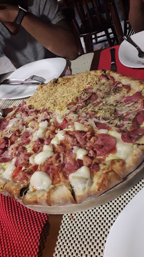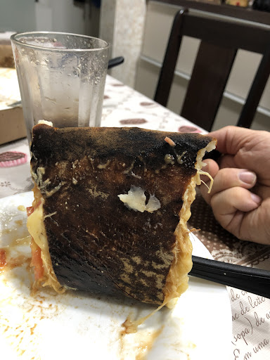 Read morePedi uma pizza grande, com 3 sabores, veio metade da pizza de portuguesa (a mais barata para eles) e a outra metade, dividida entre Strogonoff e palmito. Ou seja, metade de um sabor e 1/4 cada outro sabor. Ridículo a divisão. Além disso veio com massa embaixo queimada e borda tbm....