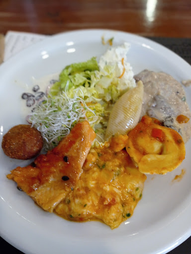 Read moreAmbiente agradável, calmo, tranquilo. A comida deixou a desejar, parece sem gosto, a parte dos grelhados, não estava com aparência fresca, peguei uma alcatra com queijo por cima, o gosto era de carne velha, o suino era seco, duro. Muita variedade de massas com molhos diversos, mas nada de especial nos outros acompanhamentos, a comida do dia a dia. Pelo valor cobrado...