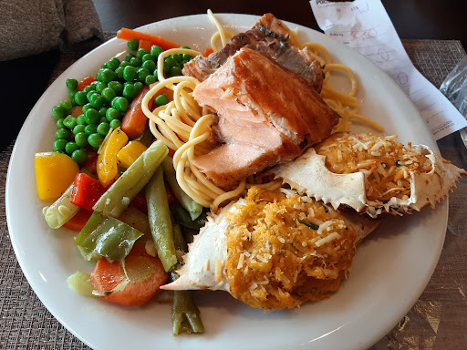 Sendo vegetariana, apreciei mt a chamativa, generosa variedade d saladas super apetitosas, incrementadas. Mas pessoa vegetariana tbm ama pratos quentes...😊🤗...Na sexta-feira q fui, tinha interessante risoto ao pesto, (nozes e manjericão), bem saboroso, algumas opções d legumes refogados e frituras. As massas italianas (lazanha, etc, todas c/ carnes, mas gentilmente me ofereceram fazer rapidamente porção individual d tortei ao suco.) Eu abordei pelo whats antes d ir e sugeriram. Pois eu optaria pelo servico d "buffet" geral...Sobremesas ótimas, cordiais chás e café. Atendimento d chamar a minha atenção, diante do interesse, amabilidade em me compensar, sendo q não usufruiria da extensa opção d carnes, frutos do mar elaboradas, tão admiradas por tantos... Restaurante q vive movimentado, d sucesso...mas q não deixa cliente alternativo na mão. Fiquei mt satisfeita. E atendimento maravilha até o fim, no cafezinho e pagamento. Toda equipe e proprietário, d parabéns! E talvez repensem nos pratos d massas italianas elaboradas, q possa ser ao menos 1 opção s/ nenhuma carne. Há muita variedade d opção vegetariana ou vegana q podem tbm aderir no buffet.. e será bem saudável... No geral....tem tbm muita gente aderindo ao vegetarinismo, veganismo e em Tramandaí ñ tem restaurante específico. ...