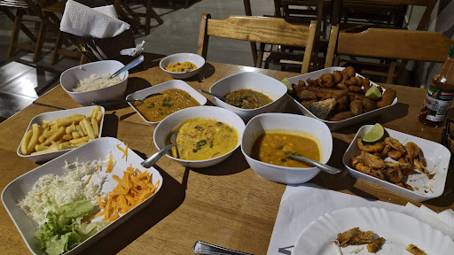 Read moreNo domingo é um rodízio de 50 por pessoa. O molho de siri e molho de camarão não agradaram a minha família, especialmente o de siri que acabou desperdiçando horas de trabalho de quem produziu com uma finalização ruim. Batata frita quase transparente de óleo. Mariscos a milanesa com alguns probleminhas de sal mal distribuído. Bons itens que podem ser mantidos: posta, filé, camarão a milanesa, farofa, moqueca de dendê. O restante teria de revisar seriamente... E talvez não servir todos os itens poderia haver uma seleção prévia dos clientes. Os frutos do mar são novos no entanto apenas...