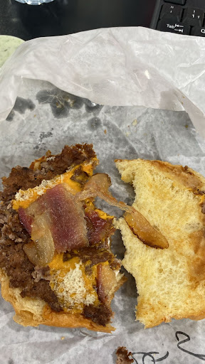 O pão? Murcho como se tivesse sido pisado. A carne? Um pedaço de borracha fria, queimada por fora e seca por dentro, com uma miséria de bacon que parecia ter passado por um microscópio antes de ser colocado no lanche. O "molho cheddar" que vocês dizem usar? Me poupem. Aquilo ali nem em outro planeta pode ser chamado de cheddar, parecia mais uma cola amarela sem gosto.