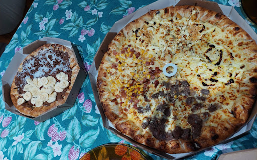 Read moreJá havia comido a pizza da Dom Ruan em outra ocasião mas dessa vez pedi um combo em casa que veio com uma pizza gigante, uma broto e um refri. A entrega foi super rápida, o app em que fiz o pedido é bem tranquilo de utilizar e os ingredientes são de muita qualidade. Só gostaria que a pizza de filé ao alho estivesse um pouco menos salgada e que a doce não viesse com a banana gelada, podia ser esquentada e colocada por baixo do creme de avelã, mas no mais recomendo!! Ótimo...
