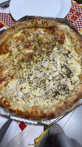 Fui em dia de rodízio. Fica um pouco mais cheio, a pizza é boa, tem uns 10 sabores salgado, os tradicionais apenas, 2 sabores doce, brigadeiro e banana. O atendimento dos garçons é são, são atentos e prestativos. Porém tem um intervalo muito grande entre as pizzas. Cheguei às 9h e fiquei esperando 30 minutos para comer o primeiro pedaço, sendo que o rodízio é de 20h as 22h. Com um período de apenas 2h, não pode ficar tanto tempo sem servir pizza. Parece que fica muito tempo sem pizza e depois soltam tudo de uma vez. O local não possui estacionamento próprio, mas possui vagas nas proximidades, tem acessibilidade ao salão, mas não reparei...