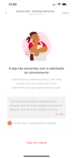 Read moreFiz pedido de 3 ofertas com Free-Refil nesta loja. Cada refrigerante, na nota fiscal, ao custo de R$14,90. Na hora de entregar o pedido tentaram me enfiar três latas de refrigerante que custam cerca de R$5. UM ABSURDO! Não possuem o produto, não avisam e depois da compra é que informam. O pior de tudo é que não cancelaram o pedido nem fizeram estorno. Já é a quarta vez nessa mesma loja com esse atendimento medíocre. O bom é que nessa mesma praça de alimentação temos o KFC e também o McDonald's a poucos metros de distância....