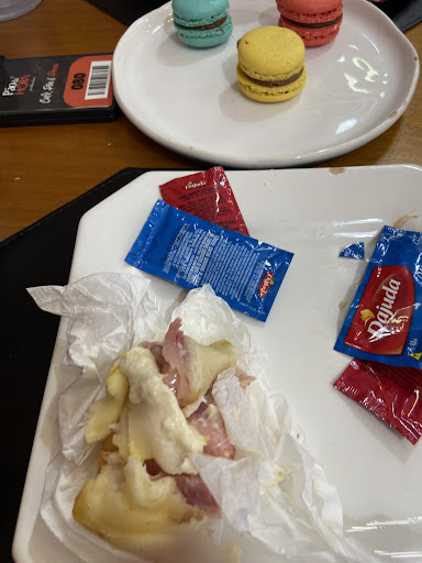 Pedi um salgado e quando estava quase no fim eu notei que ele estava bem cru, mas parecido com aspecto de queijo derretido, mas ao abrir a massa deu para notar. Eu e meu marido chamamos a atendente e ela disse que realmente estava muito cru e iria mostrar ao padeiro. Retirou o prato, esperamos e nada, e tivemos que pagar por um salgado que talvez me faça mal, além de não recebermos sequer uma desculpa ou solução do caso. Fora os macarons que pareciam velhos e estava bem duro e esfarelando. Enfim, péssima...