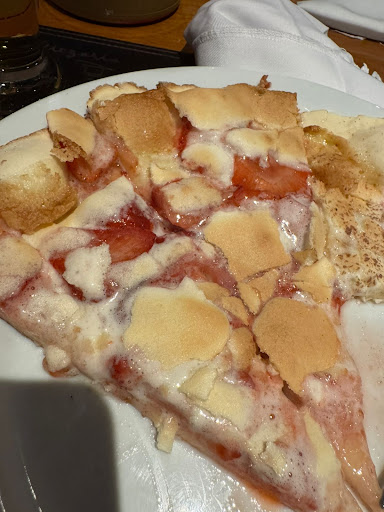 Read moreCheia demais, o espaço tinha que ser maior, tudo muito rápido, tumultuado, rodízio de pizza com um valor bastante acima da média, as bebidas muito boas, o atendimento um pouco a desejar, acredito que seja por ser um lugar muito frequentado. Mas nada sequencial, tem pessoas que chegaram antes, então tecnicamente são servidas primeiro com o rodízio de pizza de sal, mas aqueles pessoas que chegam depois acabam que ficam meio sem opções de escolha já que ao servir eles dão sequência nas pizzas de doces, fazendo com que os clientes que acabaram de chegar comem pizzas mais de doces sem ter comido as pizzas de sal primeiro. Por fim, levando em consideração a quantidade de pessoas que tem no local, que chegam rapidamente, os garçons devem prestar mais atenção e focar nas pessoas que estão chegando no local e fazem a escolha do rodízio de pizza, para que assim o rodízio venha ter uma sequência de opções e variedades para os que chegam depois, colocando primeiro as pizzas de sal e em seguida...