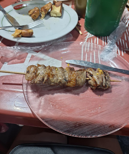 Acabamos com as bebidas, nada dos espetinhos chegarem. A garçonete aparece informando que um dos ingredientes do meu pedido, estava em falta, cancelei este item e fiquei apenas com um espetinho de cupim. Depois de muita espera, os pedido chegaram. O espeto de queijo coalho e provolone, vieram tão duros que parecia espeto amanhecido. O espetinho de cupim da pior qualidade que há. Credo, que trem duro! Apesar de estar com fome, não cogitei nem pedir uma jantinha, pela demora, chegaria quando o estabelecimento escerrasse o expediente.