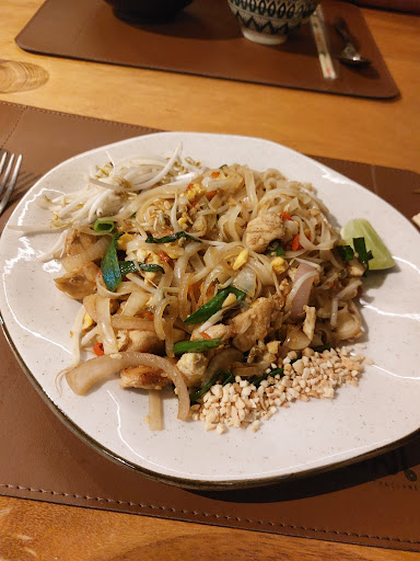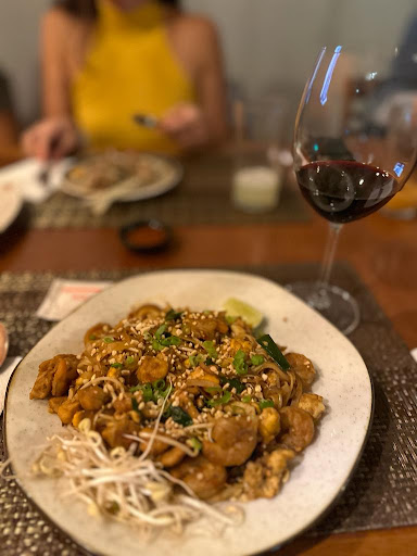 Local muito bonito, confortável, um clima muito legal. A comida tem muito SABOR! Então realmente é muito bom comer uma culinária diferente, e perceber que aquilo e um sabor novo, uma experiência nova. Talvez o único prato que seja mais "normal" seria o Pad Pak. Sejamos sinceros, é um salteado de carne com legumes. Muito gostoso, mas é isso, um belo salteado, com bastante alho. Agora o Gaeng, aquilo sim faz você programar a próxima visita. Frescor do leite de coco, o aroma e sabor da mistura de gengibre com curry. Simplesmente DELICIOSO! Entendo completamente o preço dos pratos, não é um restaurante estilo popular. Talvez as entradas e o Chop Suey, que deveriam ser mais simples, por serem complementos, poderiam ser um pouco mais baratos. Nas bebidas, recomendo provar o Thai Iced Tea. Eu fiquei com um mix de sentimento quanto a ele durante a refeição. Talvez eu não ache que combine tanto como algo para beber enquanto come, mas com certeza tem um sabor diferente, que precisa ser apreciado. Nos drinks autorais, achei sim o preço salgado (mas para ser sincero, não conheço preço desse tipo de drinks em outros lugares). Na sobremesa, aproveite o Khao Niaow! Não sei dizer o motivo, mas ele é a sobremesa para a experiência. Fresco, leve, não é um doce hiper palatável (excesso de doce). Ele é a medida, para apreciar um bom docinho sem preocupação. Na dúvida, verifiquem o cardápio deles, com os preços, que está indicado na página do Instagram. Vale a...