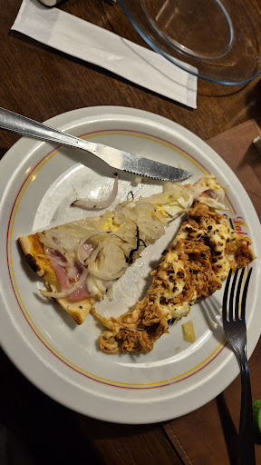 Chegamos no domingo por volta das 21:00h. O garçom se aproximou de nossa mesa deixou o cardápio e sequer disse boa noite. O segundo garçom que coletou nosso pedido foi um pouco mais simpático. Fizemos o pedido e aguardamos cerca de 45 minutos (um absurdo pois tinha apenas 04 mesas ocupadas no estabelecimento) depois de reclamar da demora veio a pizza que tínhamos pedido, meio fria, rica em cebola e tomate; acho que naquele final de semana houve uma liquidação de cebola e tomate no comércio. Cebolas cortadas muito grossas. O sabor predominante da pizza foi cebola. Os sabores que tínhamos escolhidos eram à moda da casa e strogonoff de frango.