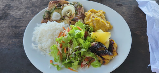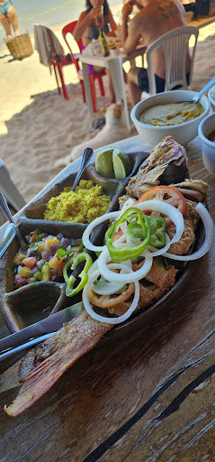 Amazing view with chairs and tables directly on the sand, good music (I appreciated the fact that it was not too loud), efficient and nice service, and tasty food: we shared the grilled fish between two persons, it was Big portion and came with rice, black beans, salad, farofa, potatoes, carrots and pumpkin. Maybe not my favorite kind of fish (quite salty and heavy) but i imagine (and hope) it was a local fish and also fresh one which is the most important. Also we had some beers very cold,...