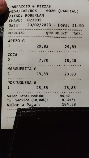 Uma grata surpresa! A Pizzaria Carpaccio oferece uma experiência excelente em todos os sentidos. A pizza é simplesmente maravilhosa, com aquele sabor típico de São Paulo e uma variedade que agrada a todos os gostos.