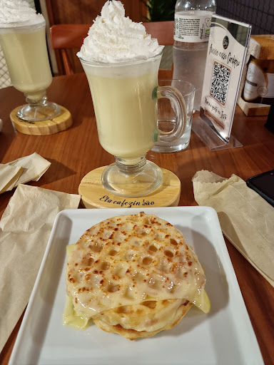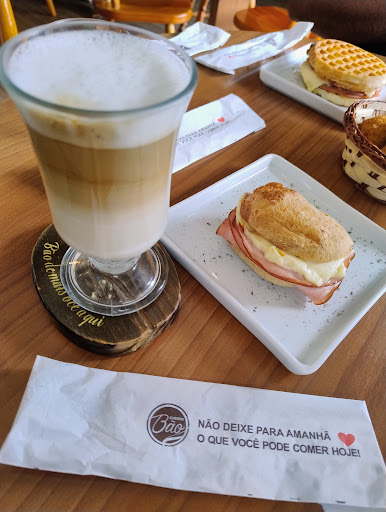 Conta com um cardápio muito variado (sério, é até difícil escolher), com opções de cafés, chocolates e outros bebidas quentes ou geladas. Para comer, mais uma infinidade de opções. Recomendo o pão de queijo com linguiça com os molhos barbecue e mostarda da casa, excelentes!