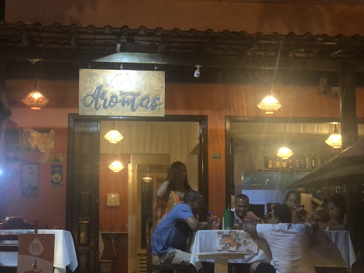 O restaurante Aromas fica localizado na rua do Portal próximo a fonte. Um local lindo repleto de árvores com a beleza da fonte e de uma rua colonial. É um local belíssimo para saborear uma comida deliciosa em todos os aspectos, ouvir uma boa música e receber um tratamento excepcional. Os garçons apresentam um atendimento padrão sem deixar a desejar em nenhum quesito. Descobrimos essas restaurante explorando as ruas do Portal e podemos dizer que foi um dos maiores achados do Morro. Lá desfrutamos da entrada a sobremesa ao som de uma eclética dupla que colocou um repertório encantador. Logo ao entrar no restaurante fomos recepcionados por Rodrigo um garçom super atencioso. No decorrer da noite tivemos um atendimento sensacional. Como entrada pedimos um camarão na chapa com queijo coalho o sabor espetacular só chamamos atenção por que no cardápio falava chapa porém a apresentação do prato não foi na chapa, mas o sabor estava tão espetacular que esse quesito não tirou o brilho do prato. Em seguida pedimos como prato principal um risoto de fundi com filé mignon que carne maravilhoso e o risoto sensacional a junção dos dois promovia uma explosão de sabor único, pena que o prato quando chegou despertou tanta vontade de comer que não lembrei de tirar a fotografia e de sobremesa seguimos a indicação de Rodrigo cocada de forno com sorvete que sobremesa sem palavras para descrever. Foi uma noite maravilhosa regada de muita comida gostosa e um som agradável. Não provamos os drinks pois levamos o vinho e o que não poderia deixar de pontuar como iríamos consumir a comida eles não cobraram taxa de rolha outro ponto positivo do local. Se você for em Morro não deixe de conhecer esse restaurante...
