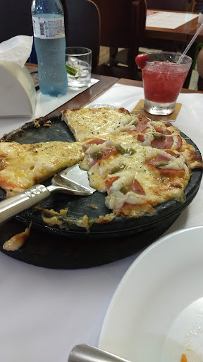 Hoje tive uma PÉSSIMA experiência nesse restaurante, estabelecimento vazio ( tinha 4 mesas ocupadas, sendo que 2 já estavam servidas), fiquei 50 min esperando uma pizza! o ambiente é uma poluição sonora, tinha rádio e televisão ligados , você não entendia nada, minha esposa teve que se levantar da mesa pra perguntar pq a demora da pizza , pois já tinhamos perguntado e o garcon não respondeu. No final pedi uma água da casa e o garcon NÃO me trouxe descumprindo a lei 2.424/95, relatei isso para o responsável e também nada fez! Não recomendo a ninguém pois tive uma PÉSSIMA experiência e nenhum respaldo do responsável. ( única coisa que valeu a pena foi a pizza que estava...