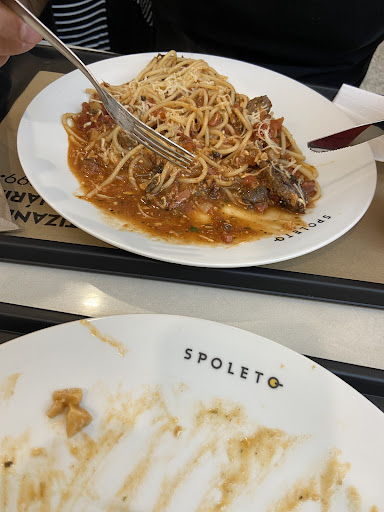 Read moreHoje, 01/05/2022 fui pessimamente atendida pela equipe do Spolleto do Shopping de Varginha. Tinha muito movimento e os atendentes estavam nos forçando a fazer o pedido num tempo em que mal conseguiamos escolher as opções. Em momento em que nos distraímos lendo o cardápio os atendentes nos chamaram e não percebemos já que eles gritavam entre eles, então a atendente que montava o prato deu um grito que do outro lado do Shopping dava pra ouvir, nos assustou, assustou outros clientes e nossas crianças, num tom agressivo e sem educação alguma conosco. Perderam bastante cliente com isso pois todos ali na fila ficaram indignados....