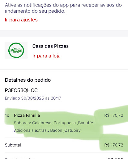 Read moreSeguinte pedi uma pizza familia na casa das pizzas para retirada