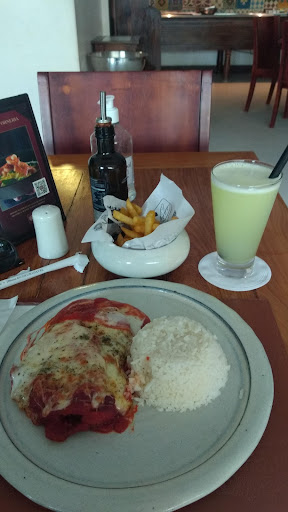 O cardápio tem como proposta pratos italianos e não peca em nada. O prato que eu escolhi é um clássico - Parmegiana de frango e posso garantir foi delicioso e bem executado. Bem servido (quase não consegui comer tudo😁). Comida fresquinha e apresentação super caprichada. Não comi nenhuma sobremesa, mas tenho a impressão de que deve ser tão maravilhosa quanto o prato principal. Tomei um suco de limão que é o meu suco favorito e sai satisfeita demais do restaurante. O atendimento é ótimo, o lugar está atendendo aos protocolos do COVID e também realizam delivery. Fui indicada por todos a conhecer e Amei, indico com certeza que conheçam. Lugar ideal para um jantar com as amigas e para os casais também.