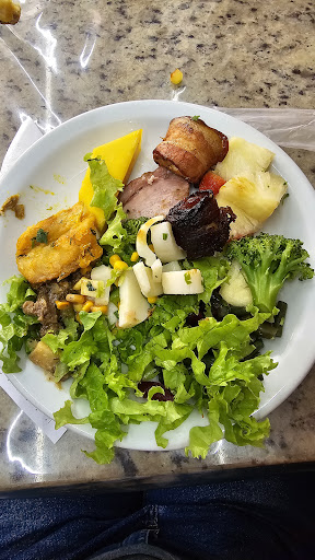 Comida bastante variada, com opções de pratos quentes (arroz, feijão de Caldo, lasanha, macarrão, etc), saladas de folha, legumes cozidos (couve flor, brócolis híbrido, beterraba, vagem, etc) e várias opções de carne (picanha suína, carne de panela, bacalhau, peixe frito, medalhão de frango, etc).